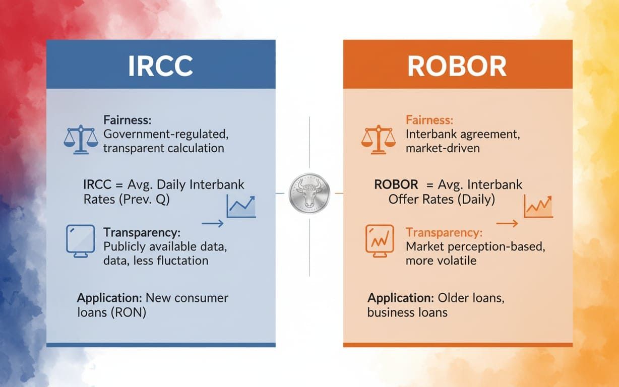 Comparația IRCC vs ROBOR este esențială pentru înțelegerea peisajului actual al creditelor românești. Acești doi indici coexistă în prezent, fiecare având domenii specifice de aplicare și caracteristici distincte care influențează costul finanțării.